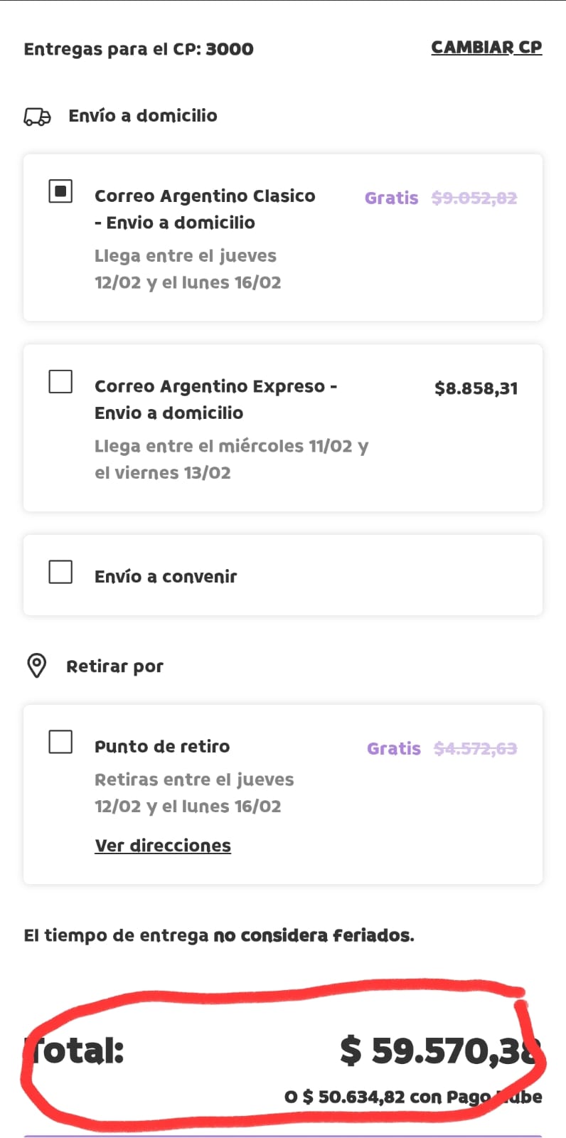 Retiro en punto de entrega (si está disponible)